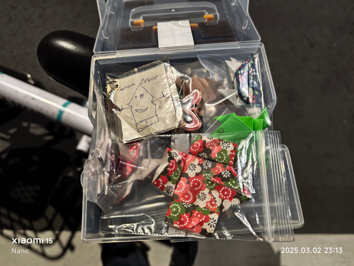 日本折纸协会附近的 cache,容器里有很多折纸,甚至日志纸本身也是以折纸的形态存在!